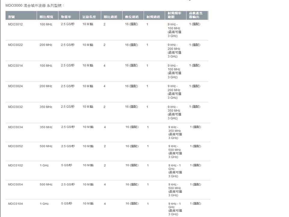 1 GHz、500 MHz、350 MHz、200 MHz、100 MHz 頻寬機型